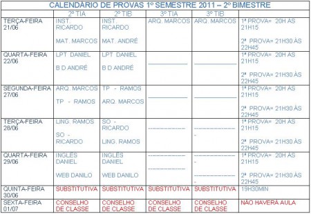 Cono grama das Provas